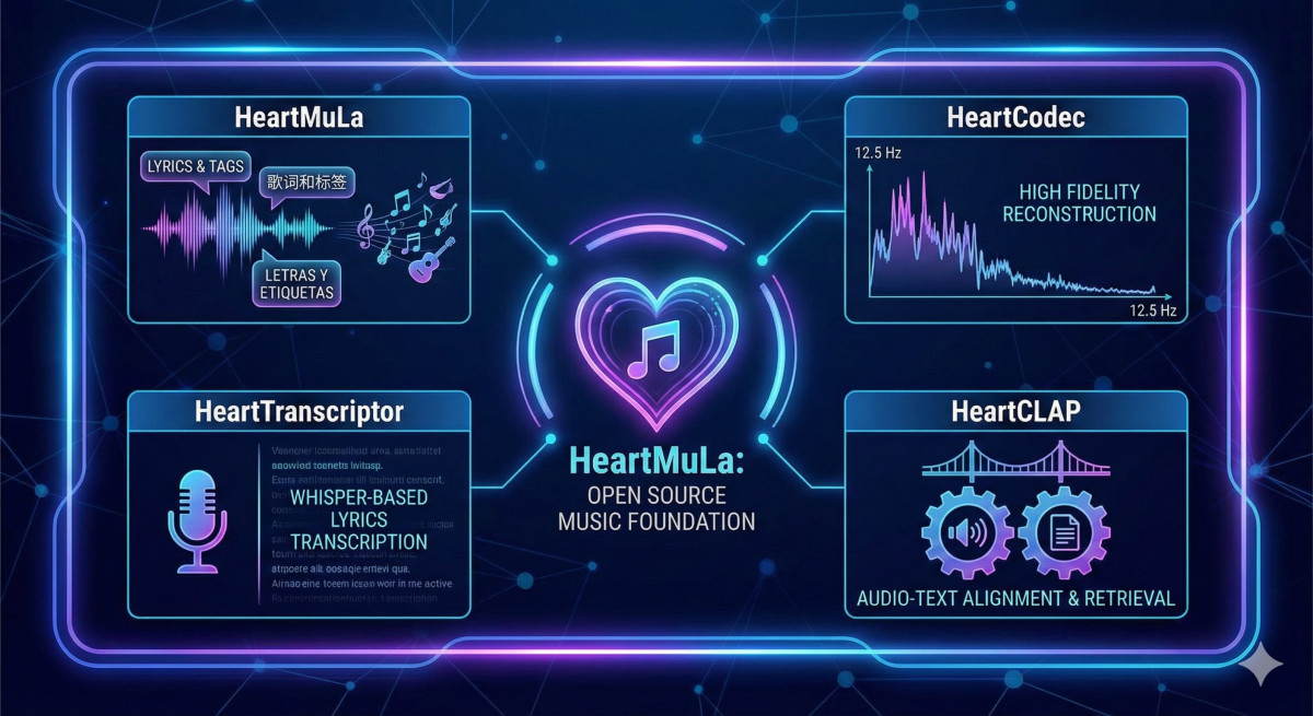 - HeartMuLa: a music language model that generates music conditioned on lyrics and tags with multilingual support including but not limited to English, Chinese, Japanese, Korean and Spanish.